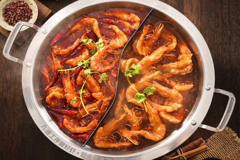 食材精選進(jìn)口大蝦,搭配秘制底料制作而成,研發(fā)出一鍋兩吃的飲食模式(先吃蝦后涮菜,葷素搭配隨心選),打造出綠色健康的飲食新文化。